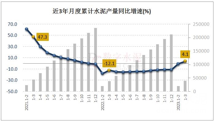 一季度,全国累计水泥产量4.02亿吨,同比增长4.1%,1-2月为下降0.6%,去年同期为下降12.1%;3月份,全国单月水泥产量2.06亿吨,同比大幅增长10.4%,创历史同期最高水平。