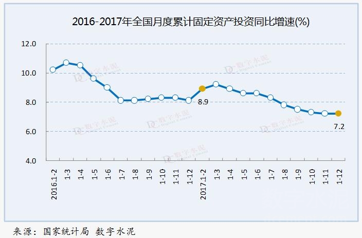 2017年,全国固定资产投资(不含农户)63.17万亿元,同比增长7.2%,增速与1-11月份持平,低于去年同期1.7个百分点。从环比速度看,12月份固定资产投资(不含农户)增长0.53%。
