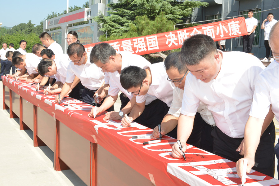 最后,在集团领导的带领下,全体人员依次在印有“山水集团2020年质量月活动启动仪式”的横幅上郑重签名,许下一份质量承诺,为集团持续提升产品质量贡献自己的一份力量。