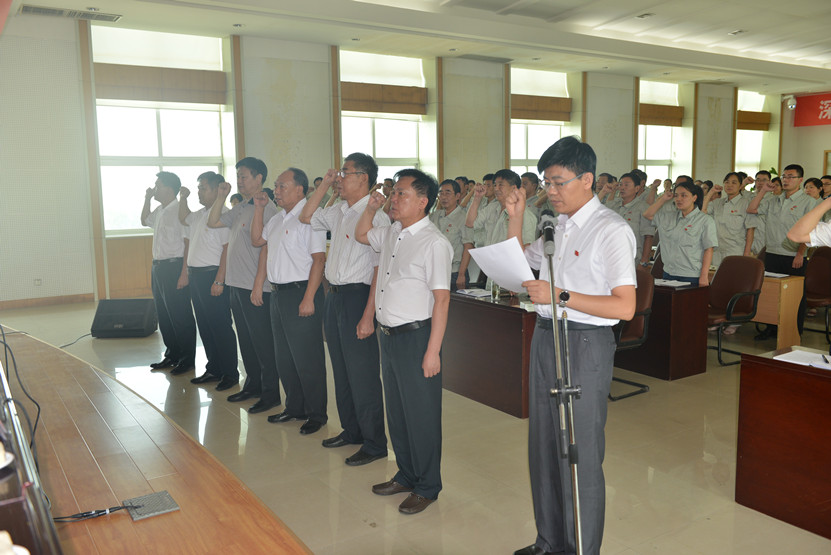 会议中,集团党委委员、副总经理陈仲圣带领与会党员重温了“入党誓词”。集团纪委委员、治安保卫部部长赵玉彩作为党员代表向山水集团全体共产党员发出了《为党旗添光彩,为集团发展建功立业》的倡议。