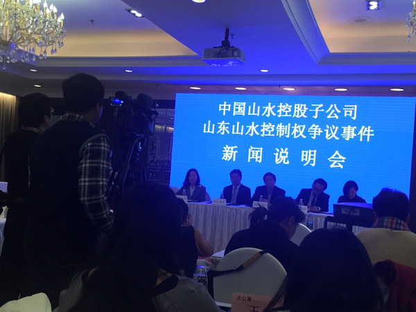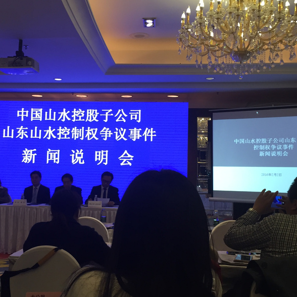 2016年2月2日,中国山水水泥集团有限公司在北辰五洲皇冠国际酒店举行了“中国山水控股子公司山东山水控制权争议事件新闻说明会”。希望通过新闻说明会,能够披露事件的发展始末,避免社会各界受到不实信息的误导。中国山水水泥集团有限公司董事长李留法先生、公司董事阎正为先生,北京天驰君泰律师事务所张合律师、李美春律师进行了本次说明会的内容阐述: