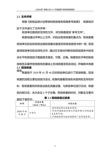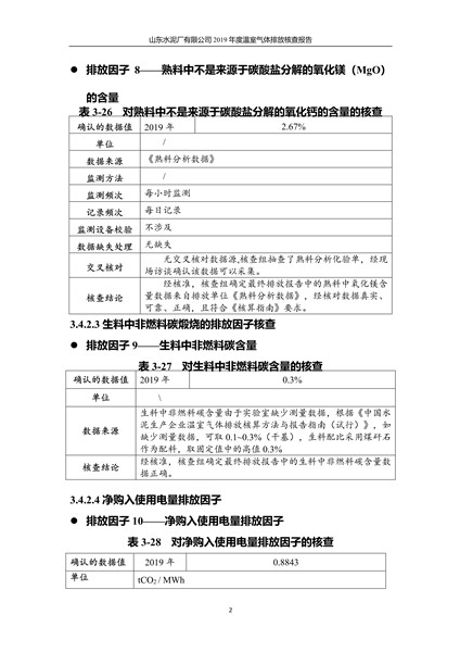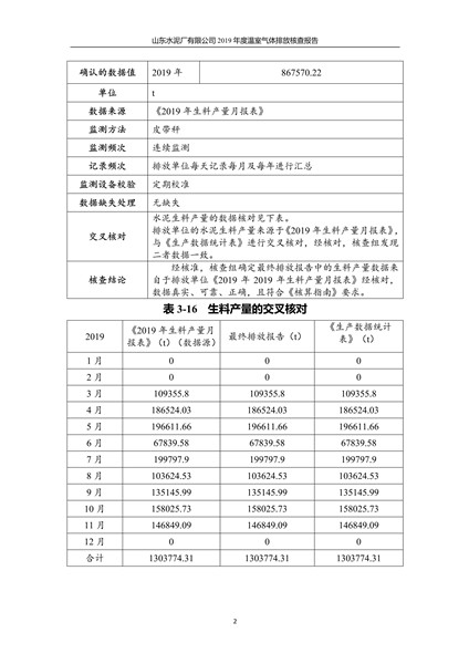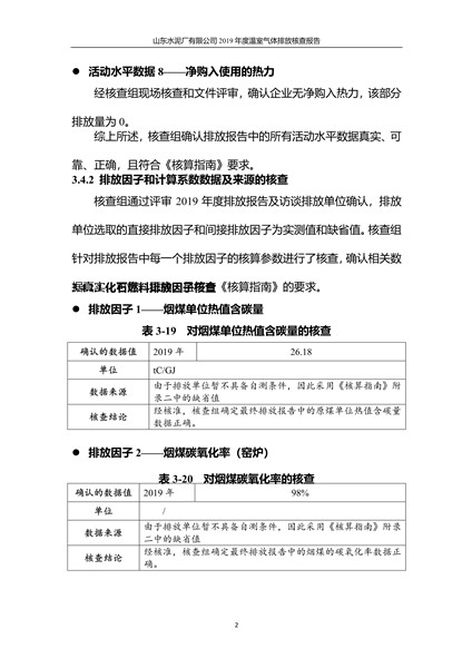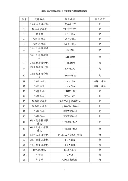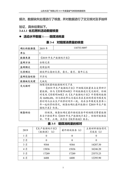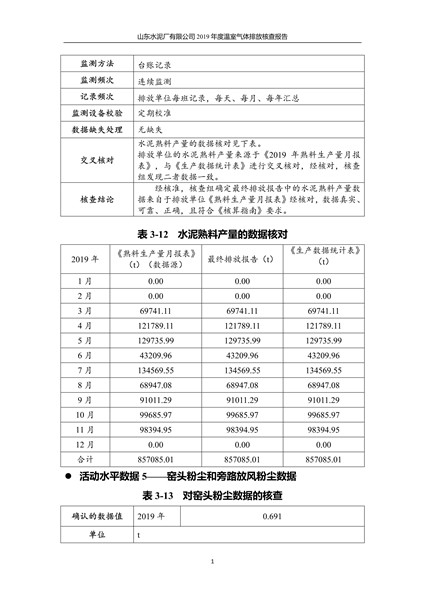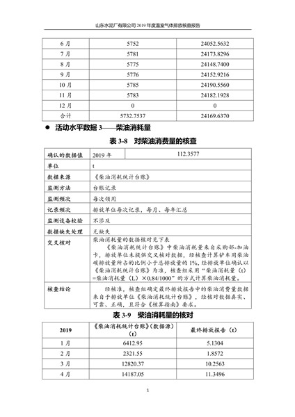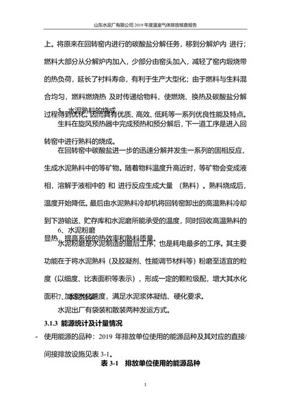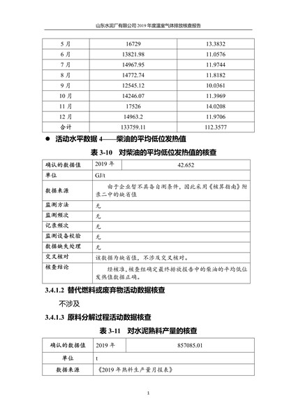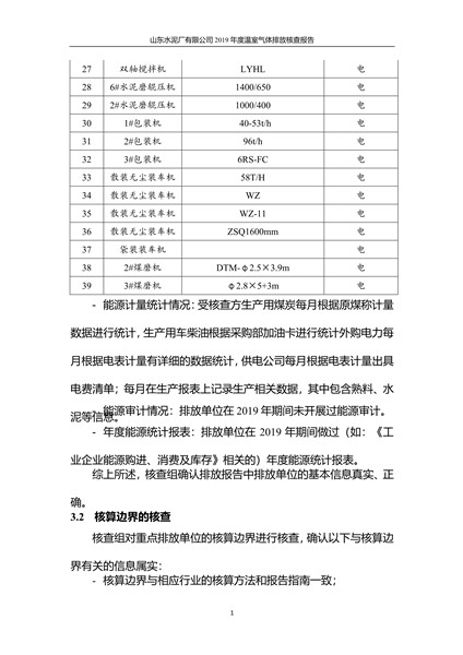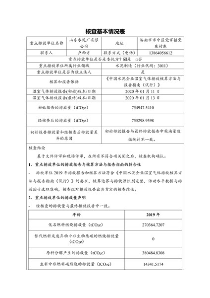 山东水泥厂有限公司2019年度温室气体排放核查报告
