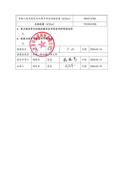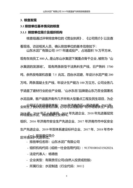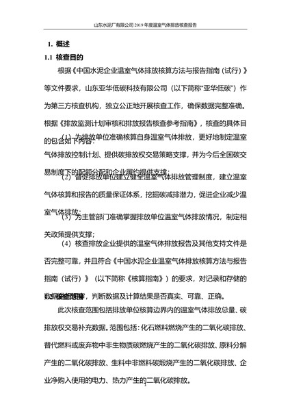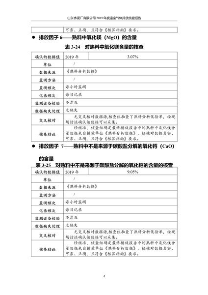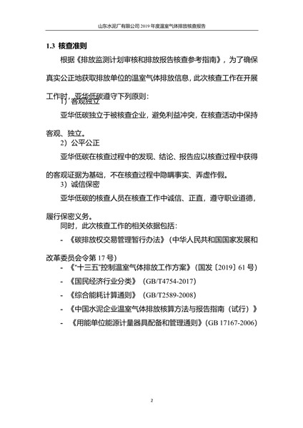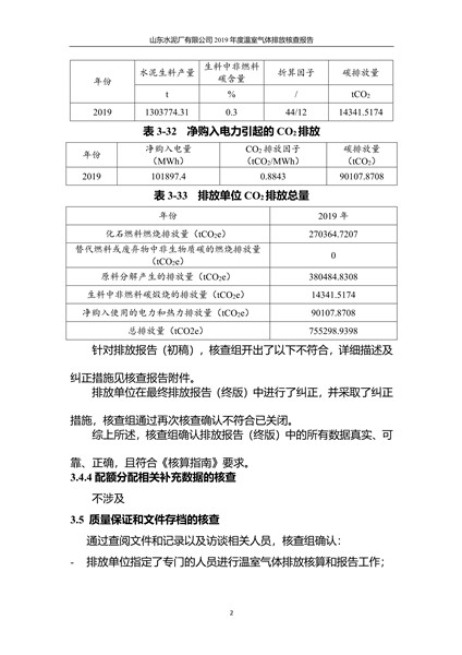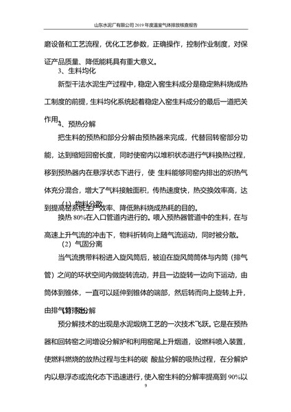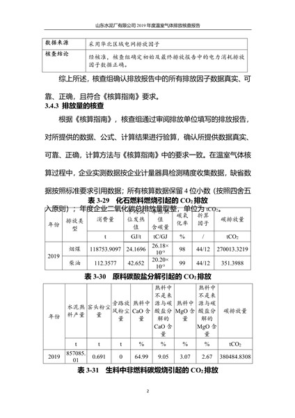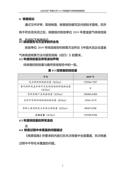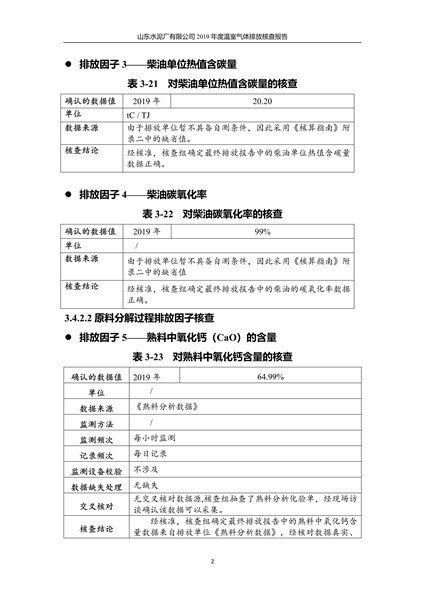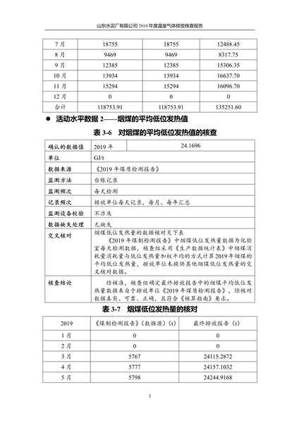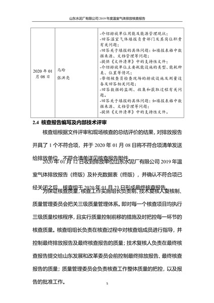 山东水泥厂有限公司2019年度温室气体排放核查报告