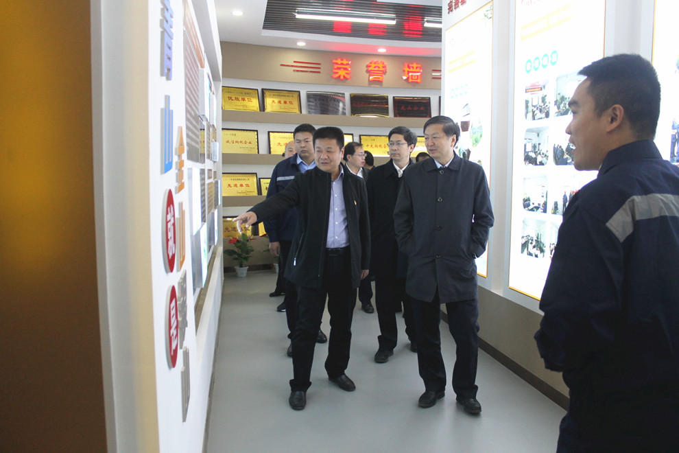 随后,区委领导在公司讲解员引导下参观了公司党建文化展厅。在党建展厅,公司讲解员向李新胜书记、闫桂新区长介绍了集团发展历程。李新胜书记、闫桂新区长听到企业建厂以来已向当地累计上缴税收3.5亿元后,赞赏企业担当社会责任,为地区发展做出有力贡献。在观看企业环保治理成果时,区委领导对企业现场呈现出的绿色、美观、整齐、洁净的整体环境印象深刻,认为公司积极践行“绿水青山就是金山银山”理念,不愧为全区工业企业的环保标杆。李新胜书记、闫桂新区长还在参观过程中向公司总经理询问了企业生产经营情况,对公司扎实推进基层党建工作,促进企业高质量发展所取得的成绩表示充分肯定。