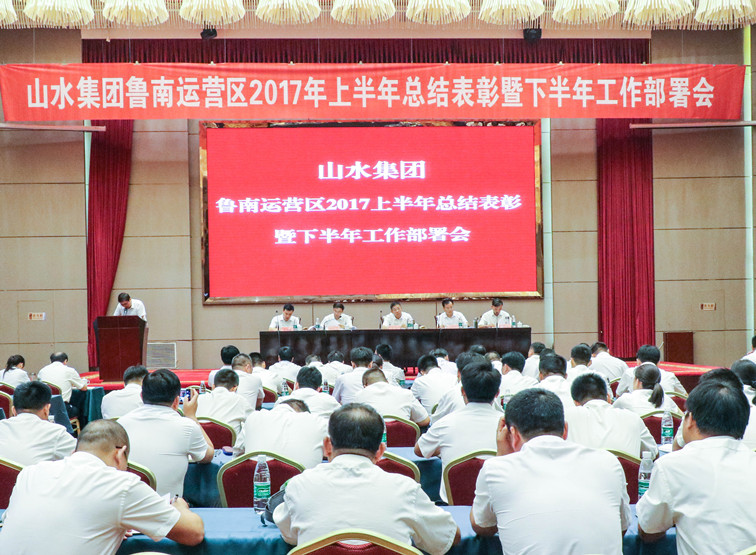 鲁南运营区 7月25日,鲁南运营区召开2017年上半年工作总结表彰暨下半年工作部署会议?;嵋橄低匙芙崃嗽擞习肽晟ぷ骺骨榭觯才挪渴鹆讼掳肽旯ぷ?,同时表彰了工作中表现突出的优秀员工。运营区总经理李松,副总经理白代生、徐庆明等运营区领导及各子公司班子成员共计70余人参加会议。